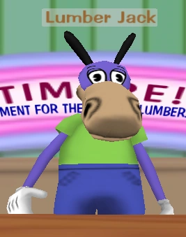 Lumber Jack is the NPC Toon at Timbre! Equipment for the Singing Lumberjack on Baritone Boulevard, Minnie's Melodyland.