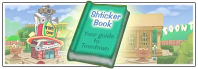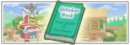 The Shticker Book is given to toons during the toontorial by HQ Harry. It is a book that players can read to see their progress and change settings.